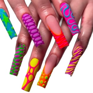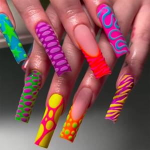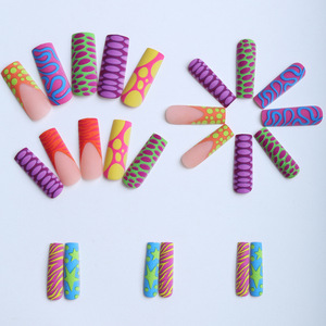 国境を越えた人気のヨーロッパとアメリカのインスタイル水玉模様フレンチウェアラブルネイル3Dレリーフ加工ドーパミンロングチューブフェイクネイル