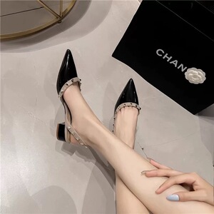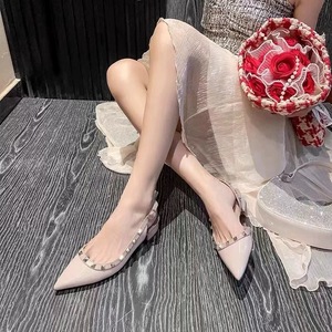 HL11 女性用の美しいバックサンダル 2025 新しいハイヒールリベットシングルシューズニッチデザイン気質ポインテッドトゥサンダル