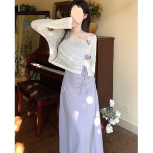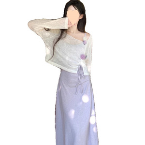 ファットmmパープルサスペンダースカート立体花竹綿アウターブラウス2025春夏超見栄えの良いドレススーツ