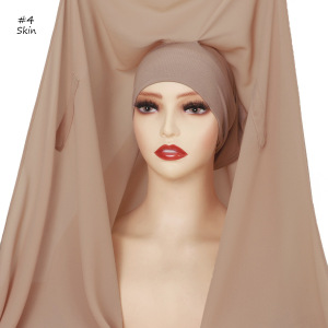 高品質の無地のシルキー厚手シフォン、同色のベースキャップ、内蔵マグネットバックル、便利なターバンスカーフ