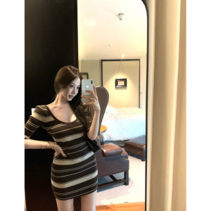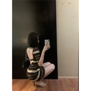 Xinda cross backless ストライプ痩身ウエストドレス夏 2025 新しい腕包みショートスカート