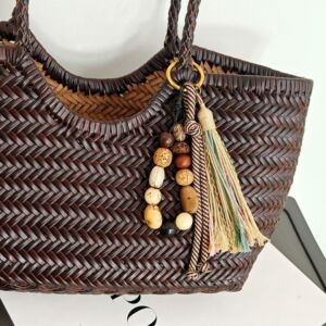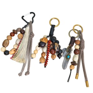 オリジナルレトロリゾートスタイル天然菩提種子ビーズバッグぶら下げ編組ロープバッグペンダントキーホルダー携帯電話チェーン