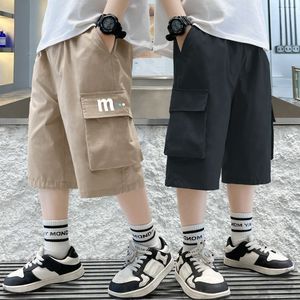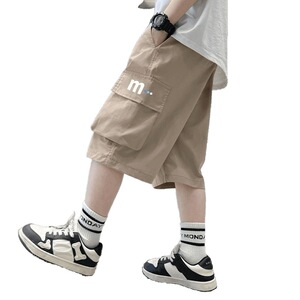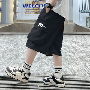 夏の男の子のショートパンツ薄い緩い五分パンツ 2025 新しいオーバーオール子供のカジュアルスポーツボーイズパンツトレンディな