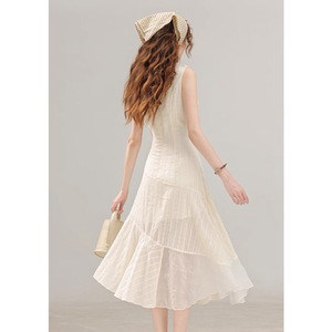 【真夏のほのかな光】フレンチ高級アプリコットノースリーブベストワンピースレディース2025新作イレギュラースカート