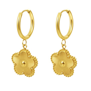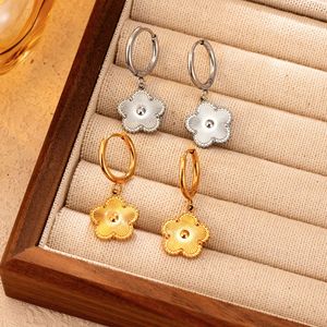クロスボーダー限定の5枚の葉の花のペンダントステンレススチールイヤリング、女性用、トレンディで多用途、18Kメッキ、ハイエンドで多用途のイヤリング