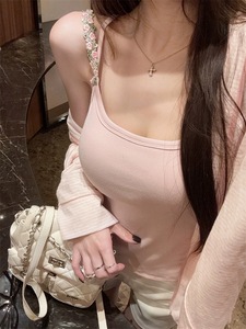 フラワーショルダーストラップ調節可能な夏の新しいキャミソール純粋な欲望スタイルの通勤サスペンダーには胸パッドが付属しています