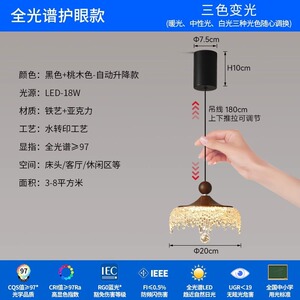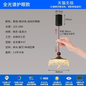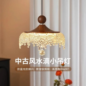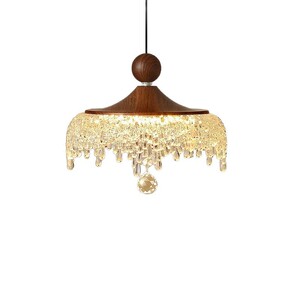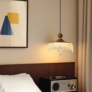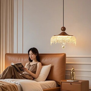 ミッドセンチュリースタイルの寝室のベッドサイドシャンデリアは昇降可能、レトロなウォールナット色のフレンチダイニングルームのテーブル通路エントランスシャンデリア