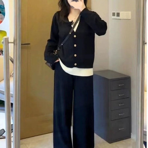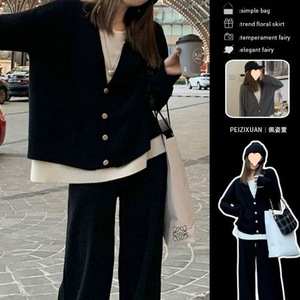 2025新款大码宽松爆款可爱甜辣显瘦外搭黑灰咖三色假两件裤子套装