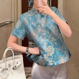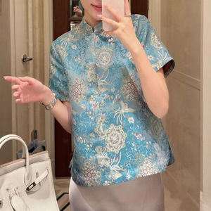 Nanyou Wholesale 2025 夏レーヨンジャカード中国風トップ装飾バックル付き絶妙なファッショナブルな年齢を減らすシャツトレンド