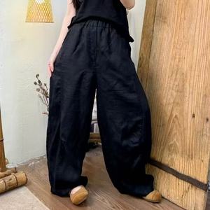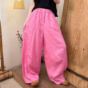 2025 夏韓国版ルーズレイジースタイルリネン無地弾性ウエストシミターフロアモップパンツ多用途カジュアルパンツ女性 1670