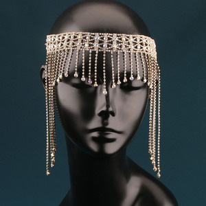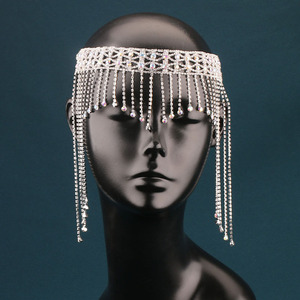 ヨーロッパとアメリカのファッションラインストーンタッセルヘアチェーンクロスボーダーパーソナライズされた誇張された豪華なステージヘッドウェア額ジュエリー