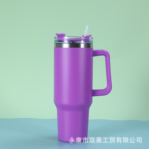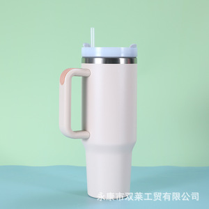 クロスボーダー 40 オンスカーカップ真空二重層アイスカップステンレス鋼カーハンドルストローカップカスタムメーカー卸売