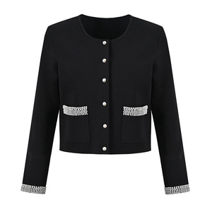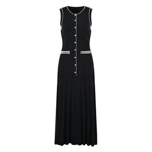 现货高端品质2025年夏秋新款珍珠边名媛针织上衣+修身无袖连衣裙
