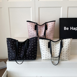 卸売韓国スタイルのリボンハンドヘルドトートバッグレディースバッグ 2025 夏の新コントラストカラー多用途ショルダーバッグトレンディな脇の下バッグ