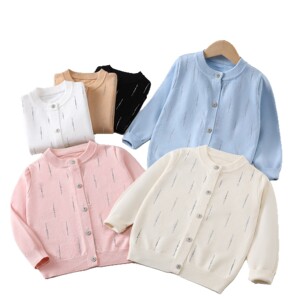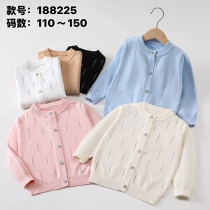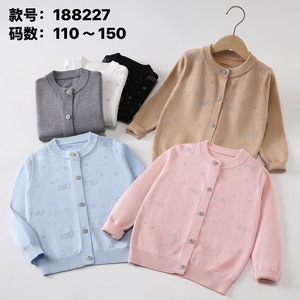 2025 外国貿易秋の新子供の長袖ニットカーディガンコアスパン糸無地ホットダイヤモンド女の子セータージャケットトレンディな
