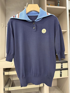 Nanyou ハイエンド婦人服 2025 夏新ネイビーカラー半袖クールスマイリーフェイスニットトップ女性のスリムフィット