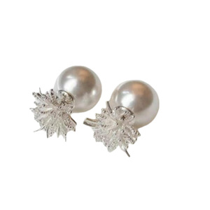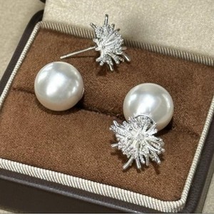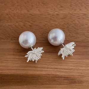 ファッショナブルで絶妙な花火パールツーピースイヤリング、女性用、ニッチな気質、多用途のシルバーニードルイヤリング、軽い高級感とハイエンドのイヤリング