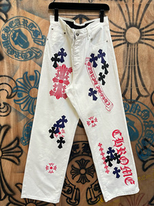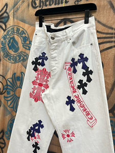 クロスボーダーアメリカントップバージョン CH クロウ リメイク クロスレザーファンシーストレートウォッシュジーンズ 男女兼用