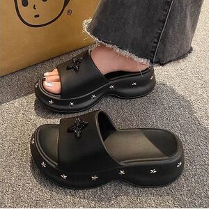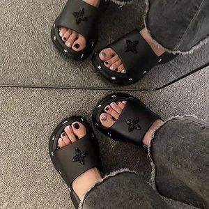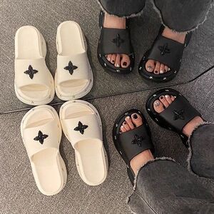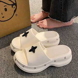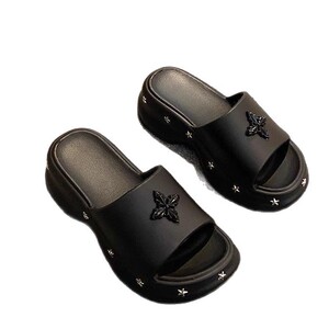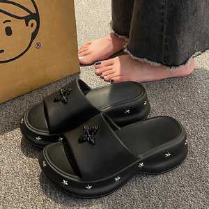 ネットセレブファッション人気スリッパ女性用夏新作厚底増量滑り止め防臭クロスフラワービーチサンダル