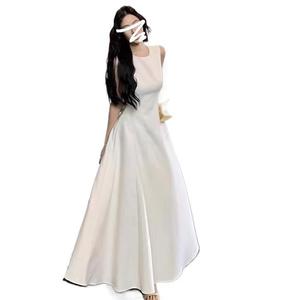 ホワイトドレスレディース夏2025新しいフレンチスタイルノースリーブベストウエスト痩身ロングスカート婦人服