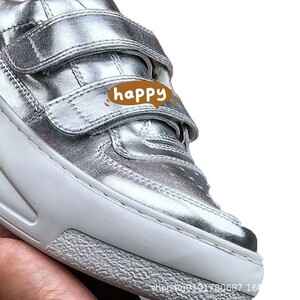 branded sports shoes欧阳娜娜同款Acne 2024ss笑脸魔术贴小白鞋