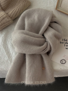 塔尖级!毛茸茸浣熊绒羊毛围巾女冬季高级感百搭保暖围脖送礼生日