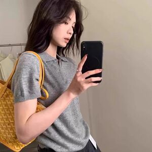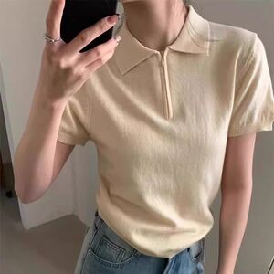 ハーフジップラペルニット半袖Tシャツレディース2025新作春韓国風スタイル薄底トップス