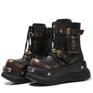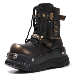 オリジナルデザインカラーブラッシュマーティンブーツベルトバックルラージトゥミッドカーフブーツY2Kホットガールワークブーツ2025秋冬
