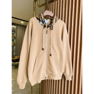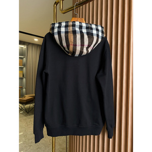 欧美潮牌秋季新款格纹拼接帽子连帽卫衣英伦情侣休闲拉链外套帽衫