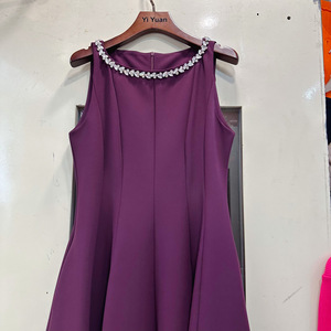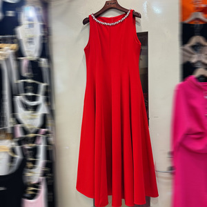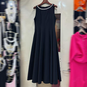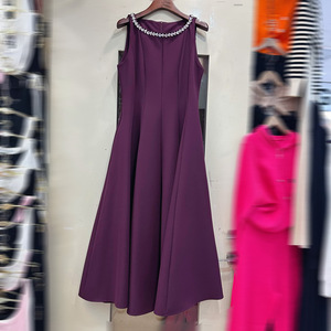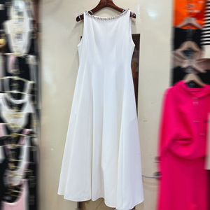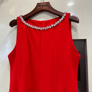 13ラインフレンチサマーエレガントラウンドネックノースリーブベストドレス、ダイヤモンドウエストスリムロングスカートドレスC2 # 2555
