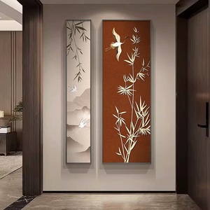 玄関装飾絵画新しい中国風の長いアルミ合金フレーム吊り絵画廊下通路垂直背景壁スプレー絵画