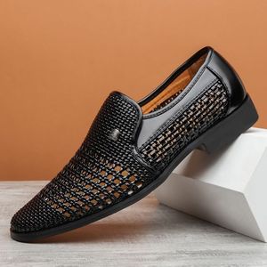 [ソフト牛革] 夏革靴、通気性カジュアルメッシュ紳士靴、メンズサンダル、本革中空穴靴