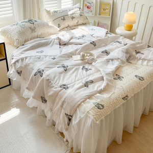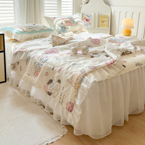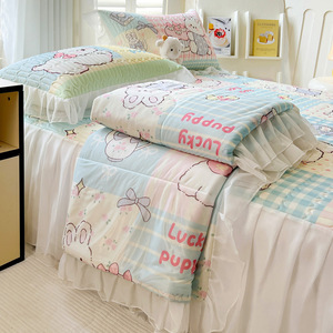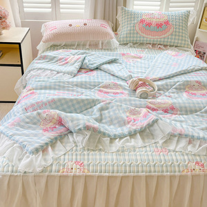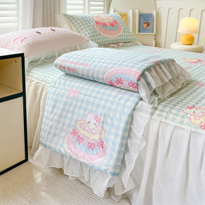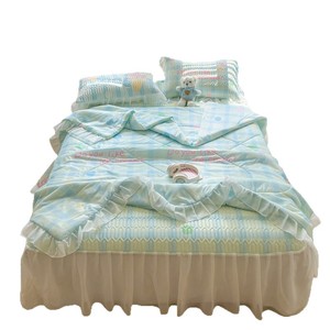 漫画ベッドスカートスタイルクールシルクマット夏クールキルト洗濯機で洗える3点セット夏キルト4点セット学生寮