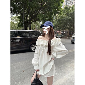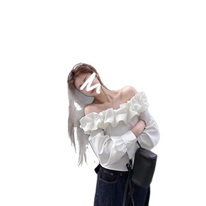 ニッチデザインピュアデシレワンラインカラー長袖白シャツ2025春新作甘辛スリムフィットトップトレンディ