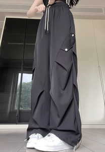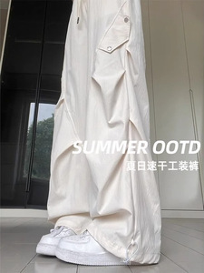 工装裤女款2025夏季新款高腰宽松垂感显瘦速干薄款运动阔腿裤子潮