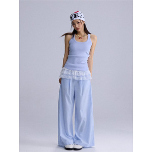 HEYABC 春夏复古蓝格子阔腿裤女2025宽松显瘦垂感多巴胺直筒长裤