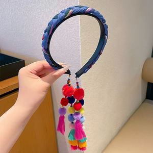 Meet Brown 2025 夏エスニックスタイルソリッドカラーベビーヘッドバンドレトロタッセルプレスヘアヘッドバンドヘッドバンド