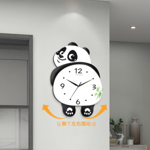 インターネット有名人パンダ壁掛け時計リビングルームホームカレンダー時計クリエイティブクォーツ時計サイレント壁時計パンチフリー時計