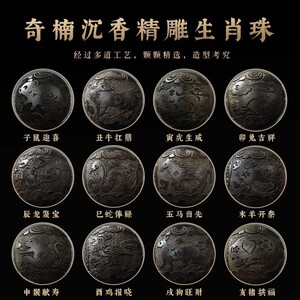 十二支チナン沈香ブレスレットルースビーズアクセサリー彫刻カスタム干支ビーズサンダルウッド文具 9 点沈水