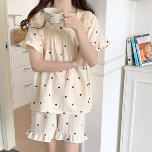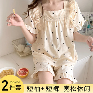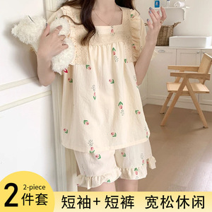 可外穿绵绸睡衣女夏天甜美短袖短裤套装薄款网红夏季女士家居服薄