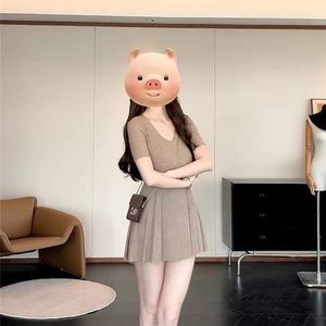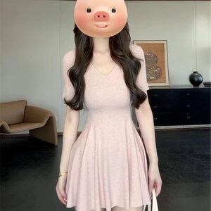 夏フレンチ V ネック半袖 T シャツドレス女性のための 2025 新しい夏の小さなウエスト痩身 A ラインスカート
