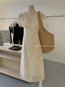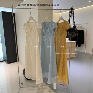 Y.JIA Yijia 2025 夏レースロングスカート雰囲気リゾートスタイル V ネックウエストジャカードドレス 5836