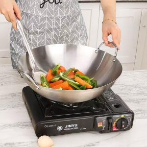 国境を越えたホテルシェフ専用中華鍋ステンレス中華鍋コーティングされていない両耳ノンスティック家庭用中華鍋ロードサイド鍋