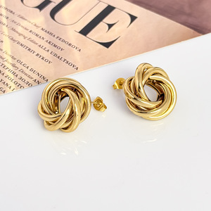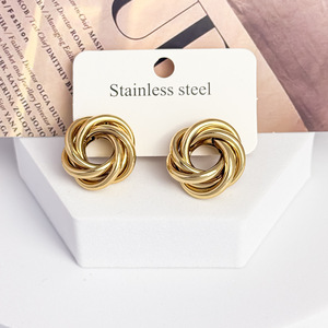 外贸欧版夸张不锈钢耳环纽线耳扣金色电渡多层组合耳圈潮流爆款