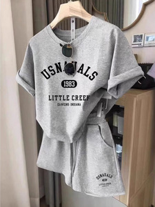 2025年クロスボーダー対外貿易スポーツカジュアルスーツレディース夏服ゆったりおしゃれ年齢軽減半袖ショーツ2点セット洋風