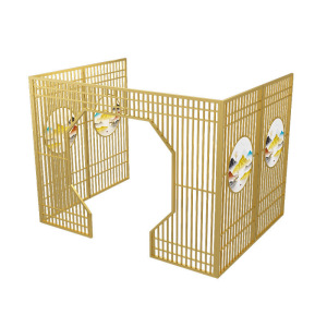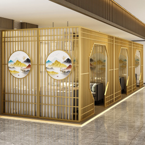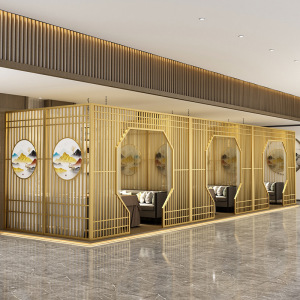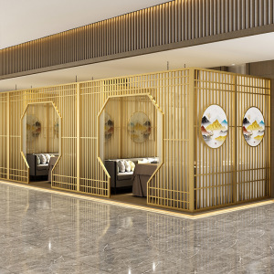 新中式餐厅包间隔断火锅店雅间围栏烧烤店卡座格栅铁艺屏风镂空