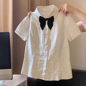 カレッジスタイルニッチ年齢軽減シャツ夏甘い2025新しいスリムファッションレース半袖シャツ女性用