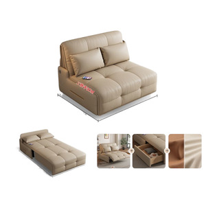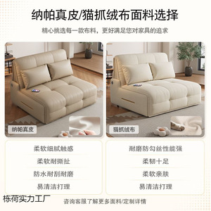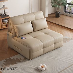 真皮电动沙发床多功能客厅小户型卧室可折叠伸缩沙发加装储物箱
