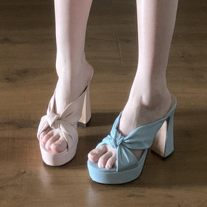 女性が外で履くための美しいフランスのハイヒールサンダル、2025年の新しい夏の厚底スリッパ、足が疲れにくい、太いヒールのハイヒール