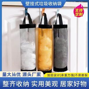 チェック柄収納吊り下げ袋 キッチンゴミ袋収納吊り下げ袋 壁掛け取り外し可能な便利な丸袋 雑貨収納袋